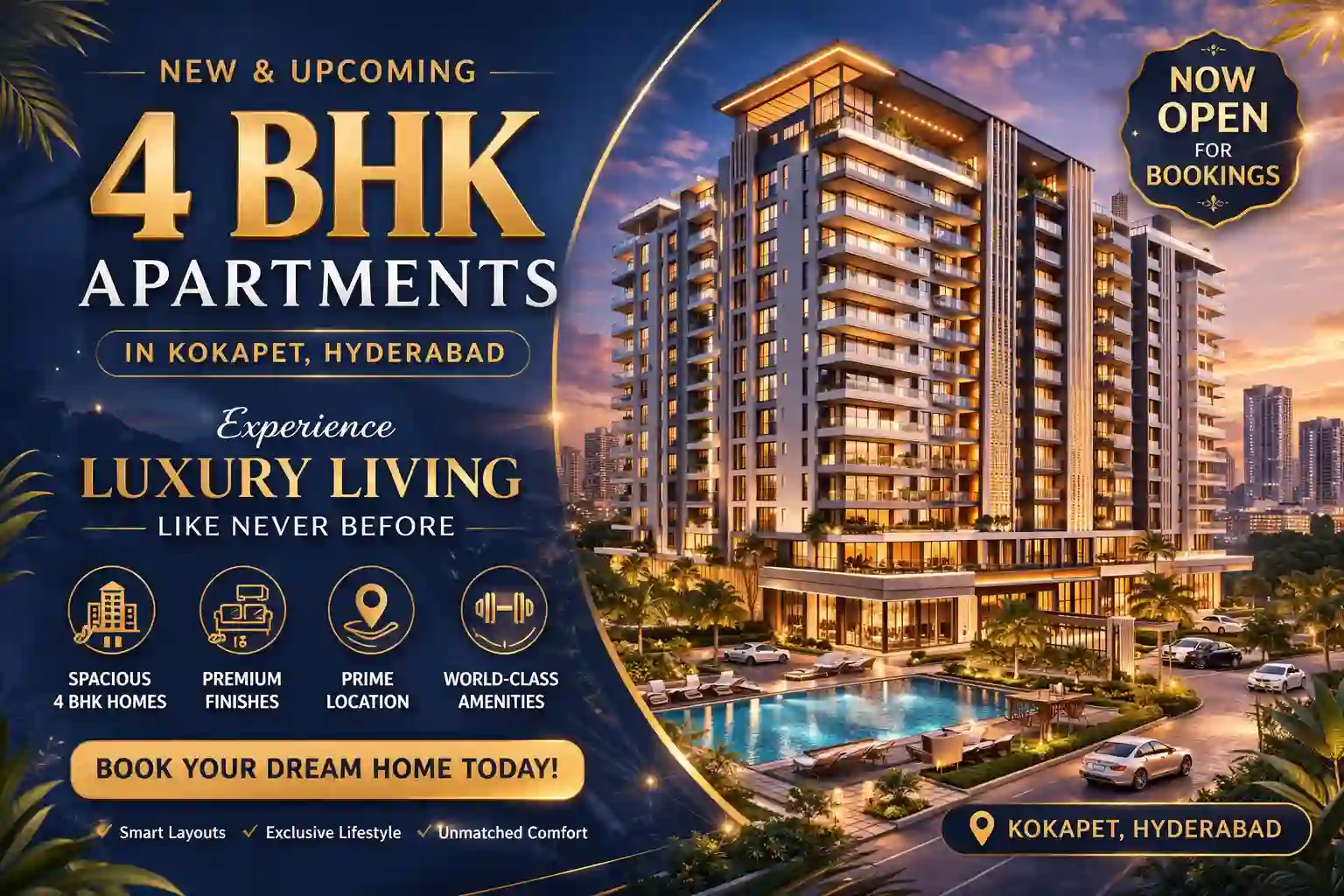 Fill the form now and explore the best residential 4 BHK apartments in Kokapet with zero brokerage support.