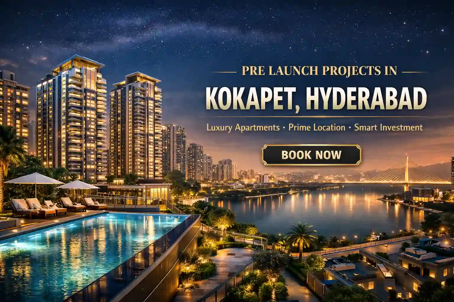 Kokapet is the new address for luxury living in Hyderabad. Choosing a pre launch residential project in Kokapet gives you two big advantages: lower prices and better unit choices. Builders offer special discounts during the early phase to attract buyers. When the project officially launches, rates go up by 15% to 25%. This makes pre launch property in Kokapet a smart move for both home owners and investors. The area sits right next to the Financial District and the Outer Ring Road. You can reach Gachibowli and HITEC City in under 15 minutes. Top schools, hospitals, and malls are also close by. With the Neopolis master plan taking shape, land prices have already crossed ₹100 crore per acre. So booking a flat now means you buy at today's rate but get the benefit of tomorrow's growth.