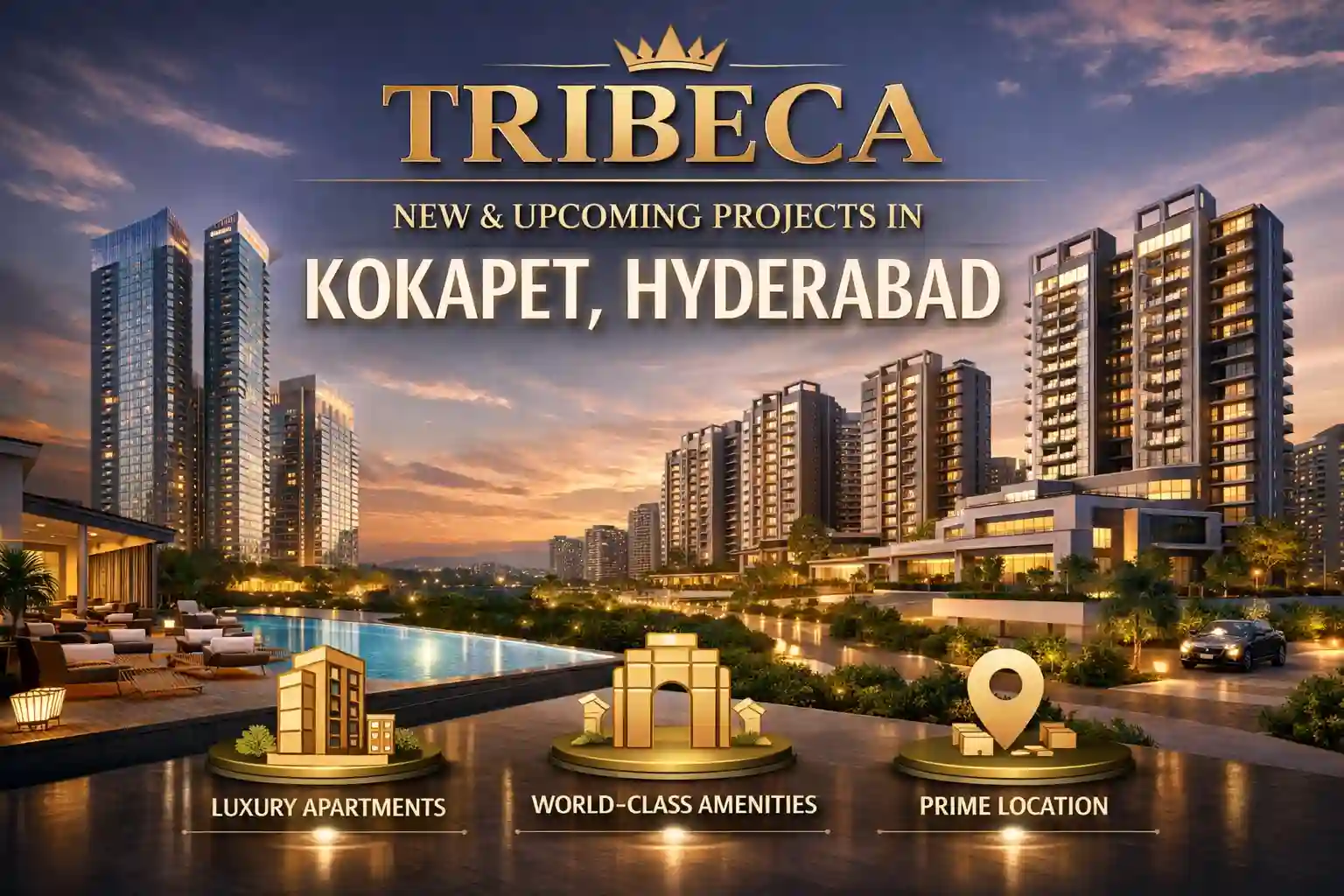 The Tribeca new and upcoming projects in Kokapet focus on premium and ultra-luxury living in one of Hyderabad’s fastest-growing locations. These projects offer spacious 3, 4, and 5 BHK apartments, with sizes ranging from 2,000 to 5,000+ sq. ft and prices starting from around ₹3.5 Cr onwards. Known for branded developments like Trump Towers, Tribeca brings high-end design, modern interiors, smart home features, and luxury amenities such as clubhouses, concierge services, and skyline views. With Kokapet’s strong connectivity to the Financial District and Outer Ring Road, and ongoing infrastructure growth, these projects are expected to be completed by 2027–2030. Overall, Tribeca projects in Kokapet offer a great mix of luxury lifestyle, prime location, and strong investment potential for buyers looking for premium homes.